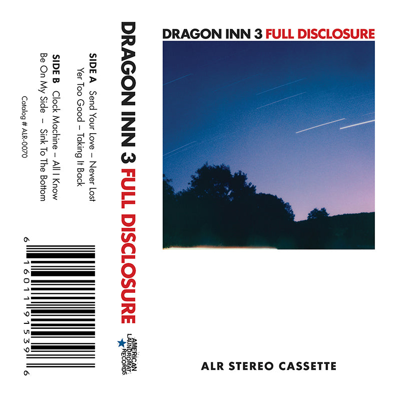 We're super lucky and grateful to work with American Laundromat Records, Bank Robber Music, and SRG Studios. They've been helping us release music for the last seven years. Special thanks to Lonny Unitus for the cassette design and layouts. -Phil (Dragon Inn 3)
